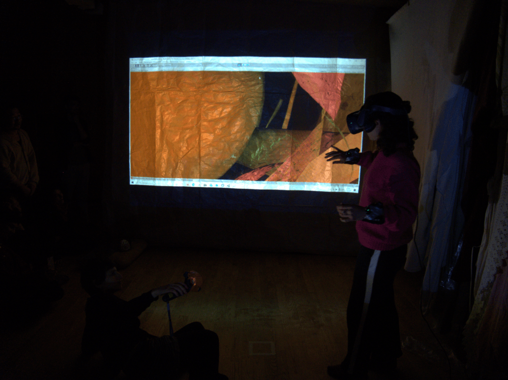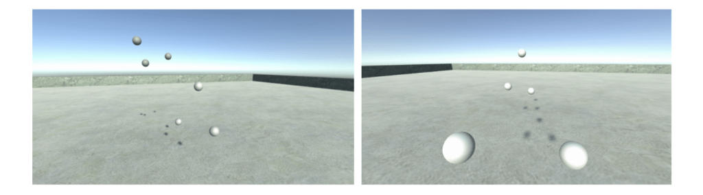 Figure 1: Third person (left) and first person view of the Articulations VR environment