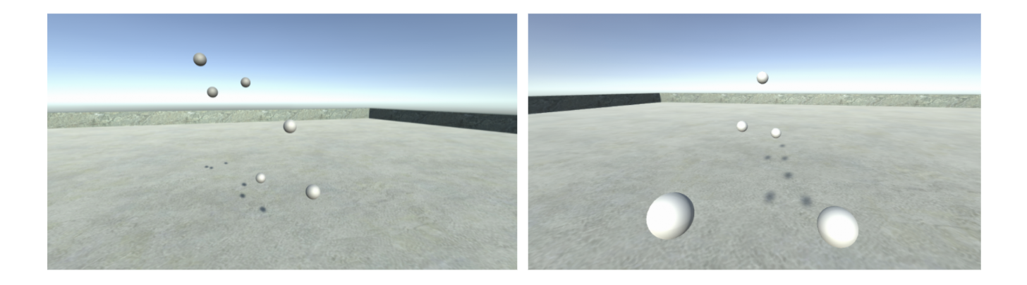 Figure 1: Third person (left) and first person view of the Articulations VR environment